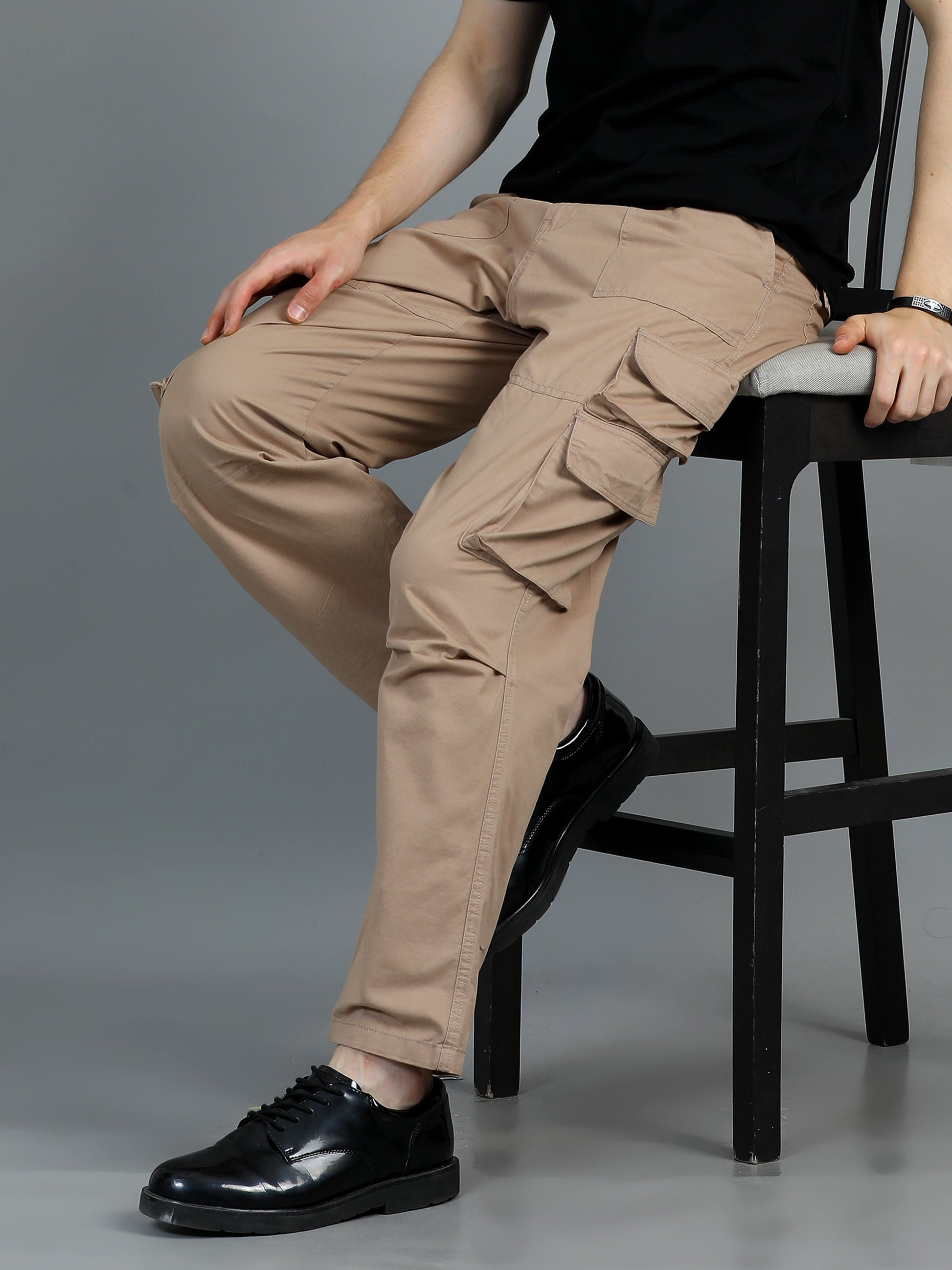 Pack of 2 Cotton Relaxed Fit Cargo Trousers, Brown khakhi