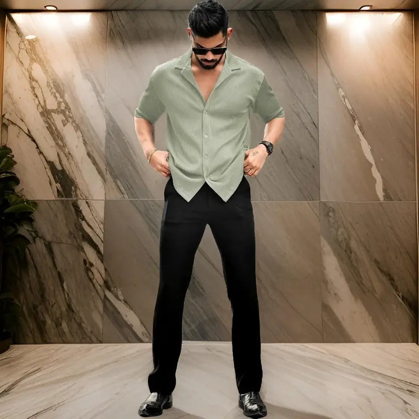Men Solid Peter Pan Collar Polycotton Light Green T-Shirt